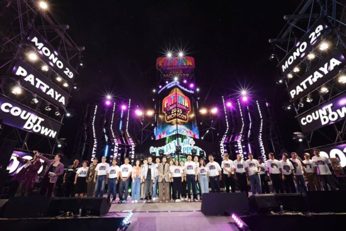 สำหรับพิธีเปิดงานได้รับเกียรติจาก คุณปรเมศวร์ งามพิเชษฐ์ นายกเมืองพัทยา, คุณอัจฉรา บัณฑิตยานุรักษ์ รองปลัดองค์การบริหารส่วนจังหวัด (รักษาการแทนปลัด องค์การบริหารส่วนจังหวัด ปฎิบัติหน้าที่นายกองค์การบริหารส่วนจังหวัดชลบุรี) พร้อมด้วย คุณธัญญา วชิรบรรจง ประธานเจ้าหน้าที่ฝ่ายรายการและผู้อำนวยสถานีโทรทัศน์ช่อง MONO29 บริษัท โมโนเน็กซ์ จำกัด (มหาชน), คุณบรรณสิทธิ์ รักวงษ์ ประธานเจ้าหน้าที่ปฎิบัติการ บริษัท โมโนเน็กซ์ จำกัด (มหาชน), คุณหทัยทิพย์ หมัดจุ้ย ผู้อำนวยการธุรกิจดูหนังออนไลน์ บริษัท โมโน สตรีมมิ่ง จำกัด ร่วมเปิดงาน “MONO29 PATTAYA COUNTDOWN 2025 CARNIVAL of HAPPINESS” (โมโน ทเวนตี้ไนน์ พัทยา เคาท์ดาวน์ 2025 คาร์นิวัล ออฟ แฮปปี้เนส) โดยมีคณะผู้บริหารจากหน่วยงานต่าง ๆ ของเมืองพัทยาและสมาชิกสภาองค์การบริหารส่วนจังหวัดชลบุรีเข้าร่วมอย่างยิ่งใหญ่ โดย คุณปรเมศวร์ งามพิเชษฐ์ นายกเมืองพัทยา กล่าวว่า “เป็นอีกวาระสำคัญหนึ่งที่ทางเมืองพัทยา ซึ่งถือเป็นพื้นที่หลักเป็นเจ้าบ้านในการร่วมกันจัดงานพัทยา เคาท์ดาวน์ ร่วมกับ โมโน ทเวนตี้ไนน์ ที่เราให้ความร่วมมือกันมากว่า 6 ปีแล้ว ซึ่งมีการจัดงานที่ยิ่งใหญ่มากขึ้น เพื่อที่จะรองรับอุตสาหกรรมการท่องเที่ยวของประเทศไทย ในครั้งนี้เป็นการที่พวกเรามาร่วมกันที่จะมีความสุขในช่วงส่งท้ายปีเก่าต้อนรับปีใหม่ตั้งแต่วันนี้ จนถึงวันที่ 31 ธันวาคมนี้ หวังเป็นอย่างยิ่งว่าทุกท่านจะมีความสุขกับการที่ได้มาร่วมกิจกรรมกับเมืองพัทยาครับ”