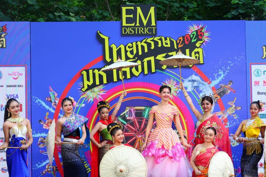 สำหรับงาน “เอ็ม ดิสทริค ไทยหรรษา มหาสงกรานต์ 2025”ในวันนี้ ได้รับเกียรติจากคุณสำรวย นักการเรียนผู้ตรวจราชการกระทรวงวัฒนธรรม และคุณศานนท์ หวังสร้างบุญ รองผู้ว่าราชการกรุงเทพมหานคร ร่วมเป็นประธานเปิดงาน โดยมีผู้บริหารเดอะมอลล์ กรุ๊ปให้การต้อนรับ และเปิดตัวเทพีไทยหรรษา มหาสงกรานต์ “ญาญ่า อุรัสยา”สวมชุดผ้าไทยร่วมสมัย สำหรับงานนี้เป็นอีเวนท์สำคัญที่ ทางเอ็ม ดิสทริค จับมือภาครัฐบาลและเครือข่ายภาคเอกชน จัดขึ้นเพื่อร่วมสืบสานประเพณีสงกรานต์ของไทย ซึ่งเป็นตัวแทนมรดกภูมิปัญญาทางวัฒนธรรมที่จับต้องไม่ได้ของมนุษยชาติ ตามประกาศขององค์การยูเนสโก ซึ่งเป็นกิจกรรมอีเวนต์ระดับประเทศที่ช่วยดึงดูดนักท่องเที่ยวชาวไทยและชาวต่างชาติ ปักหมุดแลนด์มาร์กสงกรานต์สุดยิ่งใหญ่ครั้งแรกใจกลางสุขุมวิท ที่นำเสนอเอกลักษณ์ความเป็นไทยด้วยกิจกรรมมากมาย อาทิ การเล่นน้ำสงกรานต์กลางสวน การแสดงศิลปวัฒนธรรมไทย อาทิ ขบวนกลองยาว ขบวนนางรำ เป็นต้น และความบันเทิงจากศิลปินชั้นนำยกทัพมาร่วมสร้างความสุขได้อาทิ บุรินทร์ บุญวิสุทธิ์, จ๊ะ นงผณี, แอนโทเนีย โพซิ้ว, โอปอ สุชาตา, The Paradise Bangkok Molam International Band และอีกมากมาย ร่วมเล่นเกมเกมส์งานวัดแสนสนุก ไม่ว่าจะเป็น หนุ่ม-สาว ตกน้ำ, ปาโป่ง ยิงปืนจุกน้ำปลา และเกมสนุกอื่นๆ พร้อมชมความน่ารักของการแสดงของ หนูน้อยเทพีสงกรานต์ รวมถึงอิ่มอร่อยกับอาหารไทยเลิศรส ระหว่างวันที่ 12 – 14 เมษายน 2568 เวลา 15.00 – 21.00 น. ที่อุทยานเบญจสิริ ถนนสุขุมวิท (BTS พร้อมพงษ์) และเอ็มยาร์ด ชั้น G เอ็มสเฟียร์ และชมความตระการตาของ ขบวนรถ ไทยหรรษา มหาสงกรานต์ ที่รังสรรค์การตกแต่งอย่างสวยงาม พร้อม Mascot ช้างน้อยน่ารัก, นางสงกรานต์ และขบวนกลองยาว ร่วมสาดความสนุกทั่วกรุงเทพมหานคร ผ่านถนน และและแลนมาร์คสำคัญของกรุงเทพอย่าง อนุสาวรีย์ประชาธิปไตย, เสาชิงช้า ระหว่างวันที่ 11-14 เมษายน 2568