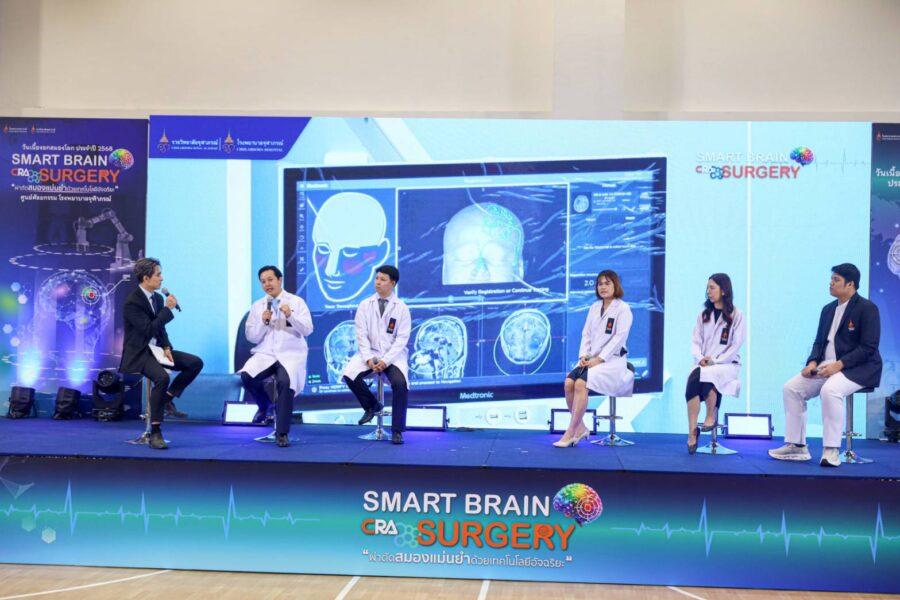 หัวข้อ “เบื้องหลังความสำเร็จ:วิสัญญีกับการผ่าตัดเนื้องอกสมอง” โดย พญ.นิศารัตน์ อาชวาคม วิสัญญีแพทย์เฉพาะทางสำหรับผู้ป่วยโรคทางระบบประสาท โรงพยาบาลจุฬาภรณ์ เปิดเผยถึง บทบาทวิสัญญีแพทย์เฉพาะทางด้านระบบประสาท โดยจะมีหน้าที่หลักในการดูแลผู้ป่วยที่เข้ารับการผ่าตัดทางระบบประสาท เช่น สมอง ไขสันหลัง และเส้นประสาท ซึ่งถือว่าเป็นการผ่าตัดที่มีความซับซ้อนสูง โดยเริ่มตั้งแต่การวางแผนและการเลือกใช้เทคนิคในการดมยาสลบให้เหมาะสมกับสภาวะของผู้ป่วย ลักษณะการผ่าตัด การเฝ้าระวังสัญญาณชีพและการทำงานของสมองขณะผ่าตัด รวมถึงการดูแลผู้ป่วยหลังผ่าตัด โดยเฉพาะในเรื่องการระงับปวด ซึ่งการวางยาสลบสำหรับผ่าตัดสมองแตกต่างกับการผ่าตัดทั่วไปเพราะการระงับความรู้สึกสำหรับการผ่าตัดทางระบบประสาท จำเป็นต้องอาศัยความรู้ทั้งด้านกายวิภาคและการทำงานของระบบประสาทเป็นอย่างดี เนื่องจากสมองเป็นอวัยวะที่เปราะบาง ต้องให้ความสำคัญกับการควบคุมความดันในกะโหลกศีรษะ ทั้งนี้เพื่อให้คุณหมอผ่าตัดสามารถผ่าตัดได้โดยง่าย, การเฝ้าระวังพิเศษ เช่น การดูคลื่นสมองระหว่างผ่าตัด การใช้เทคโนโลยีมอนิเตอร์การทำงานของสมอง ต้องเลือกยาที่ไม่รบกวนเทคนิคนั้นๆ, อีกทั้งการผ่าตัดแบบพิเศษ เช่น awake craniotomy คือการที่คนไข้ยังตื่นรู้ตัวขณะผ่าตัด การฝังเครื่องกระตุ้นในสมอง เป็นต้น สำหรับการเตรียมตัวก่อนการผ่าตัดก็จะคล้าย ๆ กับการผ่าตัดทั่วไป เช่น การงดน้ำงดอาหารก่อนการผ่าตัด 8 ชั่วโมง, การหยุดสูบบุหรี่หรือแอลกอฮอล์, การหยุดยาบางชนิด เช่น ยาละลายลิ่มเลือด เป็นต้น และโดยส่วนใหญ่แล้วหลังผ่าตัดมีความจำเป็นที่ต้องสังเกตอาการที่ห้อง ICU อย่างน้อย 1 คืน เพื่อดูแลและประเมินอาการทางระบบประสาทอย่างใกล้ชิด แต่หากมีการผ่าตัดแบบพิเศษ เช่น awake craniotomy (การผ่าตัดสมองขณะตื่นอยู่) ก็อาจจะมีการเตรียมพร้อมที่มีรายละเอียดมากขึ้น หลัก ๆ จะมี 3ขั้นตอนง่าย ๆ คือ หลับ-ตื่น-หลับวิสัญญีแพทย์จะมีการอธิบายถึงขั้นตอนอย่างละเอียดก่อน มีการให้ยาทางน้ำเกลือให้คนไข้หลับ และมีการบล็อกเส้นประสาทที่ไปเลี้ยงบริเวณศีรษะ ช่วงที่ศัลยแพทย์จะทำการตัดเอาเนื้องอกสมองออก ก็จะปิดยา คนไข้จะตื่นภายใน 15 นาที โดยไม่รู้สึกเจ็บ แต่อาจมีความรู้สึกเมื่อย หนาว และขัด ๆ สายสวนปัสสาวะได้ ระหว่างนี้จะมีการทำการผ่าตัดไปด้วย โดยที่ให้คนไข้พูดคุย อ่านรูป ยกแขน ยกขา ไปด้วย และหลังจากที่ผ่าตัดเอาก้อนออกเสร็จแล้ว หมอก็จะเปิดยาให้คนไข้หลับอีกครั้ง โดยที่คนไข้ไม่ต้องกังวลเลยเนื่องจากหมอจะอยู