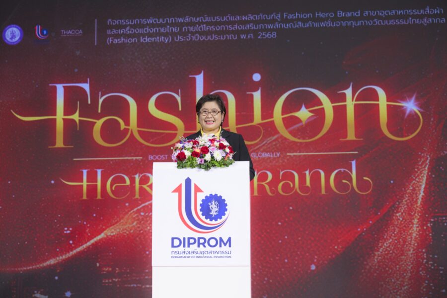 กรุงเทพฯ – วันที่ 4 สิงหาคม 2568 กรมส่งเสริมอุตสาหกรรม หรือ “ดีพร้อม” จัดกิจกรรมนำเสนอแผนการพัฒนาแบรนด์และผลิตภัณฑ์ ภายใต้กิจกรรม “การพัฒนาภาพลักษณ์แบรนด์และผลิตภัณฑ์ สู่ Fashion Hero Brand” ในกลุ่มอุตสาหกรรมเสื้อผ้าและเครื่องแต่งกายไทย ซึ่งเป็นส่วนหนึ่งของโครงการ “ส่งเสริมภาพลักษณ์สินค้าแฟชั่นจากทุนทางวัฒนธรรมไทยสู่สากล (Fashion Identity)” ประจำปีงบประมาณ พ.ศ. 2568 โดยมีผู้ประกอบการที่ผ่านการคัดเลือกเข้าร่วมโครงการจำนวน 26 กิจการ เข้ารับวุฒิบัตร พร้อมนำเสนอแผนการพัฒนาแบรนด์และผลิตภัณฑ์ ที่ได้รับการอบรมและคำปรึกษาเชิงลึกจากผู้เชี่ยวชาญ ตลอดระยะเวลาโครงการ