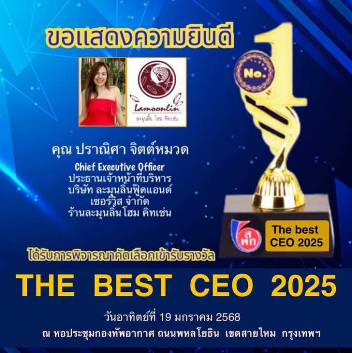 ถือเป็นอีกหนึ่งธุรกิจหญิงเก่งแห่งปี ที่บริหารงาน และสร้างธุรกิจให้เติบโตขึ้นอย่างต่อเนื่อง สำหรับ คุณปราณิศา จิตต์หมวด ประธานเจ้าหน้าที่บริหาร บริษัท ละมุนลิ้นฟู๊ดแอนด์เซอร์วิส จำกัด และ เจ้าของร้านละมุนลิ้นโฮม คิทเช่น ร้านอาหารปักษ์ใต้ชื่อดัง ที่คัดสรรแต่วัตถุดิบที่มีคุณภาพ มารังสรรค์เป็นเมนูอาหารมากมาย ในราคาที่จับต้องได้ รวมถึงเครื่องพริกแกงต่างๆ เนื้อแดดเดียว หมูเค็ม และอื่นๆวางจำหน่าย เพื่อตอบโจทย์คุณลูกค้า ที่อยากจะทำเมนูอาหารใต้ทานเอง โดยล่าสุด คุณปราณิศา ได้ถูกรับคัดเลือก ให้เข้ารับรางวัลใหญ่แห่งปี ด้านการบริหาร จาก สพท. กับรางวัล The Best Ceo 2025 ไปเมื่อวันที่ 19 ม.ค. ที่ผ่านมา โดยมี พลตรี หม่อมราชวงศ์ วัยวัฒน์ จักรพันธุ์ เป็นประธานในพิธี ณ หอประชุมกองทัพอากาศ (ห้องบุษราคัม) ถนนพหลโยธิน เขตสายไหม กรุงเทพฯ