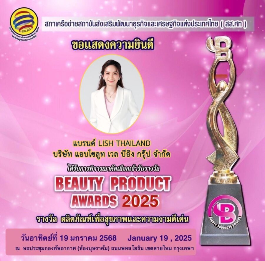 ถือเป็นอีกหนึ่งนักธุรกิจที่ประสบความสำเร็จ ในการสร้างแบรนด์เป็นอย่างมาก สำหรับ CEO สาว คุณณัฏฐาพร อนุวงศ์ เจ้าของ บริษัท แอบโซลูท เวล บีอิง กรุ๊ป จำกัด ผู้ผลิตแบรนด์ Lish Thailand ที่ล่าสุด ถูกรับคัดเลือกให้เข้ารับรางวัลผลิตภัณฑ์เพื่อสุขภาพและความงามดีเด่น Beauty Product Awards 2025 ในโครงการส่งเสริมพัฒนาธุรกิจและเศรษฐกิจเพื่อขับเคลื่อนสู่อาเซียน ครั้งที่ 40 จาก สภาเครือข่ายสถาบันส่งเสริมพัฒนาธุรกิจ และเศรษฐกิจแห่งประเทศไทย (สส.ศท.) จัดขึ้น มาตอกย้ำความสำเร็จของการดำเนินธุรกิจ ไปเมื่อวันที่ 19 ม.ค. ที่ผ่านมา โดยมี พลตรี หม่อมราชวงศ์ วัยวัฒน์ จักรพันธุ์ เป็นประธานในพิธี ณ หอประชุมกองทัพอากาศ (ห้องบุษราคัม) ถนนพหลโยธิน เขตสายไหม กรุงเทพฯ