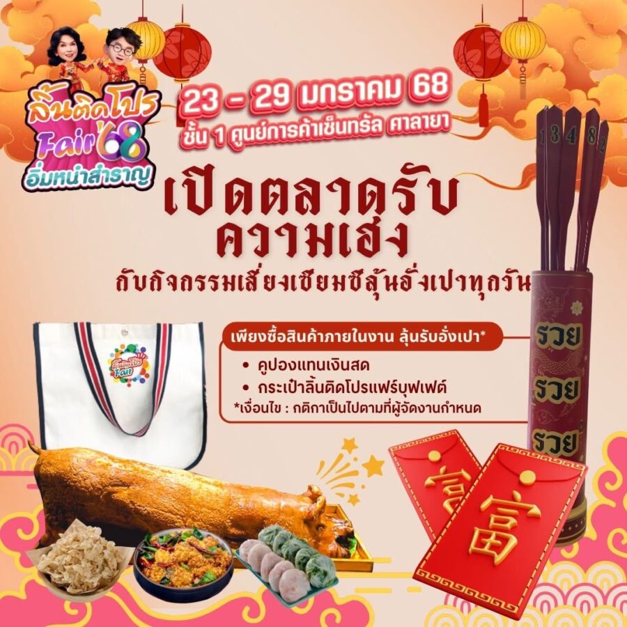 🎉พร้อมลุ้นรับอั่งเปาเป็นส่วนลดทุกเมนูภายในงาน“ลิ้นติดโปรแฟร์ อิ่มหนำสำราญ ’68” ตั้งแต่วันนี้ ถึง 29 มกราคม นี้ ณ ชั้น 1 ศูนย์การค้าเซ็นทรัล ศาลายา แล้วมาพบกันนะคะ…