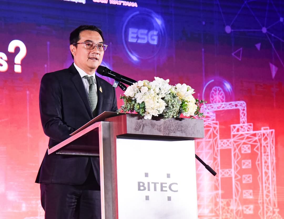 โดยได้รับเกียรติจาก นายนราพัฒน์ แก้วทอง กรรมการผู้ช่วยรัฐมนตรีประจำกระทรวงทรัพยากรธรรมชาติและสิ่งแวดล้อมเป็นประธานองค์ปาฐกถา กล่าวปาฐกถาพิเศษในงานสัมมนาครั้งนี้ พร้อมรับฟังบรรยายพิเศษ และร่วมบูรณาการแลกเปลี่ยนเรียนรู้ผ่านมุมมองและแนวคิดในเสวนาวิชาการ เรื่อง “การขับเคลื่อนกลยุทธ์ ESG มุ่งสู่เป้าหมาย Sustainable Development Goals (SDGs)” จากผู้บรรยายกิตติมศักดิ์ 4 ท่าน นำโดย นายปวิช เกศววงศ์ รองอธิบดีกรมการเปลี่ยนแปลงสภาพภูมิอากาศและสิ่งแวดล้อม ดร.สุเมธ ตั้งประเสริฐ กรรมการ การนิคมอุตสาหกรรมแห่งประเทศไทย รักษาการในตำแหน่งผู้ว่าการ การนิคมอุตสาหกรรมแห่งประเทศไทย ดร.ณัฐกร ไกรกุล Vice President Decarbonization Center of Excellence บริษัท พีทีที โกลบอล เคมิคอล จำกัด (มหาชน) และ ดร.ชนะ ภูมี ผู้ช่วยผู้จัดการใหญ่ การบริหารความยั่งยืน บริษัท ปูนซีเมนต์ไทย จำกัด (มหาชน)