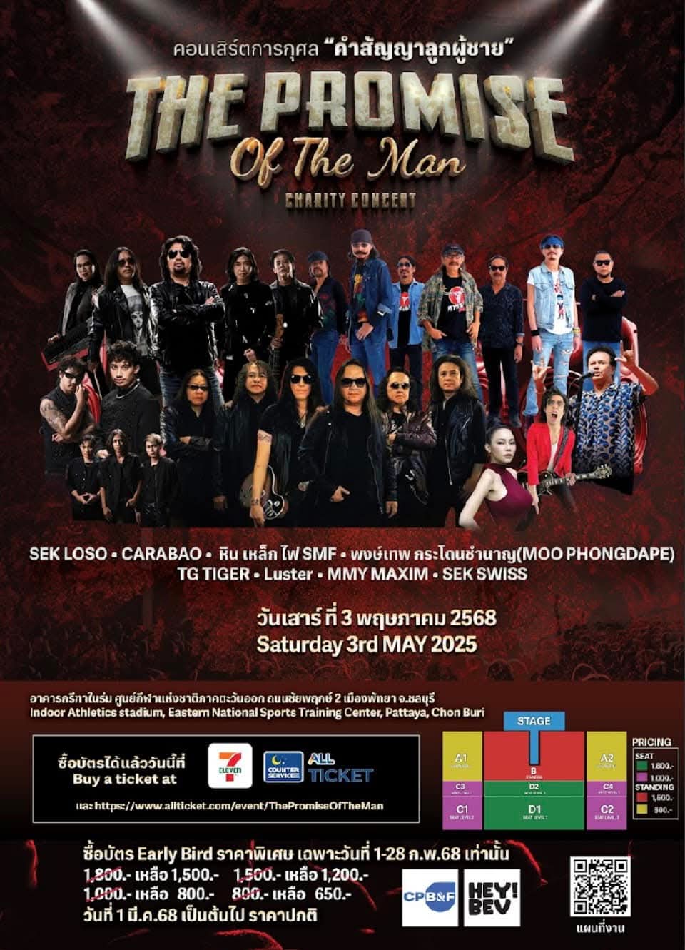 โดยคอนเสิร์ตดังกล่าว มีที่มาจาก คำสัญญาของผู้ชาย 2 คน คือคุณเอเดรียน และคุณเสกสรรค์ ศุขพิมาย หรือ “เสก โลโซ” ซึ่งทั้งคู่เป็นเพื่อนรักกัน คุณเอเดรียนรับปากกับ “เสก โลโซ” ว่าจะจัดคอนเสิร์ตขนาดใหญ่ที่สุดสำหรับวงโลโซให้ในพื้นที่เมืองพัทยา จึงเป็นจุดกำเนิดแห่งมิตรภาพ ความฝัน และความจริง ก่อให้เกิดคอนเสิร์ตระดับตำนานของพวกเขา คอนเสิร์ตการกุศล “คำสัญญาลูกผู้ชาย” โดยจะมีศิลปินระดับตำนานร่วมแสดงประกอบไปด้วย วงคาราบาว เสก โลโซ พงษ์เทพ กระโดนชำนาญ หินเหล็กไฟ และมีวงเปิด Open Act คือ TG Tiger & Luster และเอ็มมี่ แม็กซิม & SEK SWISS