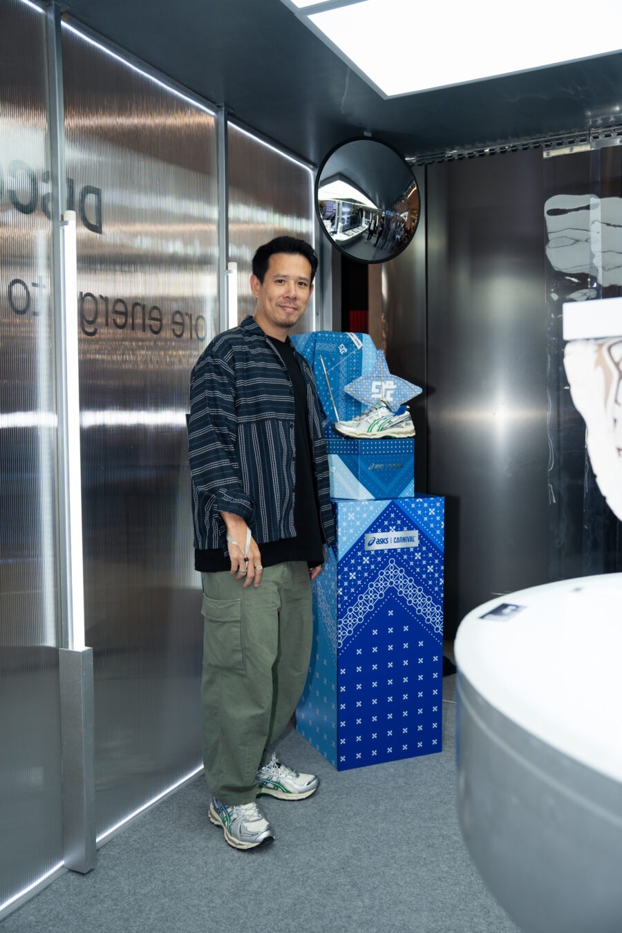 พื้นที่จัดแสดงไฮไลต์ล่าสุดของรองเท้าและเครื่องแต่งกายจากกลุ่ม SportStyle ครอบคลุมตั้งแต่รุ่น GEL-NYC™ 2.0, GEL-CUMULUS™ 16, GEL-KINETIC™ 2.0 ไปจนถึงคอลแลปสุดพิเศษอย่าง ASICS x CARNIVAL® GEL-KAYANO 12.1 “PHRA NAKHON” ซึ่งนับเป็นการร่วมงานครั้งที่ 4 กับ Carnival แบรนด์สตรีทแวร์สัญชาติไทยที่มีบทบาทสำคัญในการขับเคลื่อนวัฒนธรรมสนีกเกอร์และสตรีทคัลเจอร์ในประเทศ โดยได้แรงบันดาลใจจากอัตลักษณ์ของย่านพระนคร พื้นที่ประวัติศาสตร์ของกรุงเทพฯ ที่ผสมผสานเสน่ห์ของวัฒนธรรมดั้งเดิมเข้ากับพลังของสตรีทคัลเจอร์สมัยใหม่ ภายใต้คอนเซ็ปต์ “Hidden Layers of Phra Nakhon” ถ่ายทอดออกมาเป็นดีไซน์ที่สะท้อนจังหวะชีวิตของเมืองได้อย่างลงตัว พร้อมคงเอกลักษณ์ด้านความสบายของ ASICS ไว้อย่างครบถ้วน นอกจากนี้ ยังมีไลน์เสื้อผ้า SportStyle แบบยูนิเซ็กซ์มาช่วยเติมเต็มลุคให้สมบูรณ์ยิ่งขึ้น