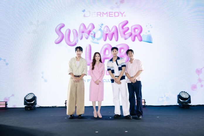DERMEDY (เดอร์มีดี) แบรนด์สกินแคร์ภายใต้เครือ MYU-NIQUE (มิว-นิค) ของบริษัท วรินดา อิมพอร์ต แอนด์ เอ็กซ์พอร์ต จำกัด จัดอีเวนต์สุดยิ่งใหญ่ “DERMEDY Summer Lab: Perfect Balance with P’Jung Cullen Dann” เปิดตัว 3 หนุ่มพรีเซนเตอร์อย่างเป็นทางการ ได้แก่ พี่จอง (จอง คยองแท), คัลแลน (พัค คีด็อก) และ แดน (คิม อินยอน) ทีมยูทูปเบอร์สุดฮอตจากช่อง Cullen HateBerry พร้อมแนะนำผลิตภัณฑ์ใหม่ DERMEDY pH BALANCE TONER PAD (3 สูตร) หรือ #โทนเนอร์แพดรีเซ็ตผิว ที่ช่วยเติมความชุ่มชื้น ฟื้นฟูผิว และปรับสมดุล pH ในขั้นตอนเดียว พร้อม Vegan PDRN เพื่อผิวแข็งแรงขึ้นอย่างเป็นธรรมชาติ ณ โซนจัดกิจกรรมลานน้ำพุ Mega Plaza ศูนย์การค้าเมกาบางนา