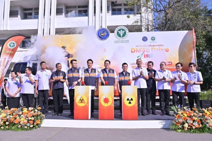 สำหรับวันนี้มีการปล่อยคาราวานรถห้องปฏิบัติการเคลื่อนที่ (Mobile Laboratory) หรือรถโมบายแล็บ กรมวิทยาศาสตร์การแพทย์ จำนวนกว่า 20 คัน พร้อมกันทั้งจากส่วนกลางและศูนย์วิทยาศาสตร์การแพทย์ 15 แห่งทั่วประเทศ เพื่อลงพื้นที่สุ่มเก็บตัวอย่างอาหารและน้ำทั่วประเทศ เฝ้าระวังเชื้อโรคปนเปื้อน และดูแลความปลอดภัยให้กับพี่น้องประชาชน โดยเฉพาะอย่างยิ่งในช่วงเทศกาลปีใหม่นี้ โดยภายในรถมีการติดตั้งอุปกรณ์ห้องปฏิบัติการที่ทันสมัย ทำให้เกิดความรวดเร็วในการตรวจยืนยันเชื้อโรคได้อย่างทันท่วงที นอกจากนี้ กรมวิทยาศาสตร์การแพทย์ยังได้พัฒนาหุ่นยนต์สำรวจรังสี ซึ่งออกแบบมาให้มีขนาดกระทัดรัดสำหรับใช้งานภายในอาคาร และอากาศยานไร้คนขับสำรวจรังสีสำหรับใช้งานภายในอาคาร เครื่องมือเหล่านี้จะถูกนำมาใช้ในการตรวจประเมินสถานการณ์รังสีในพื้นที่เสี่ยงหรือพื้นที่เกิดเหตุฉุกเฉินทางรังสี เพื่อสนับสนุนการปฏิบัติงานของเจ้าหน้าที่ ลดความเสี่ยงต่อการได้รับรังสีของบุคลากร และส่งเสริมการดำเนินงานด้านความปลอดภัยทางรังสีให้เป็นไปตามมาตรฐานที่กำหนด