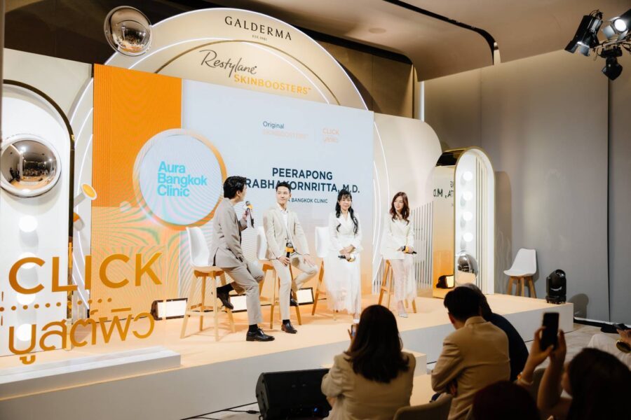 กรุงเทพฯ – กัลเดอร์มา (Galderma) ผู้นำด้านเวชศาสตร์ผิวพรรณแบบครบวงจร (The Pure-Play Dermatology Category Leader) และผู้นำกลุ่มผลิตภัณฑ์ SKINBOOSTERS ในไทย ชวนอัปเดตเทรนด์งานผิวสวยสุขภาพดีในมุมใหม่ เปิดตัวมิวสิกมาร์เก็ตติ้งแคมเปญ “#CLICKบูสต์ผิว – The New Era of Original SKINBOOSTERS™” ดึงนักแสดงสาวสวยเสียงดี “แจ็คกี้ ชาเคอลีน” มารับบทแอมบาสเดอร์ของแคมเปญ และถ่ายทอดบทเพลงจังหวะชิค ๆ “ไม่คิดจะ #CLICKบูสต์ผิว กันหน่อยน่ะหรอ” พร้อมชวนทุกคนมา “คลิก” และ “บูสต์” ความมั่นใจจากภายในสู่ภายนอก ด้วยการดูแลผิวในแนวคิดผิวสุขภาพดีที่เน้นความชุ่มชื้น ความสมดุล และความยืดหยุ่นอย่างเป็นธรรมชาติ โดยภายในงานเปิดตัวยังมีเหล่าเซเลบริตี้และอินฟลูเอนเซอร์ชื่อดังมาร่วมสร้างสีสันอย่างคึกคัก อาทิ ปันปัน สุทัตตา อุดมศิลป์, ไมค์ พิรัชต์ นิธิไพศาลกุล, วุ้นเส้น วิริฒิพา ภักดีประสงค์ และกัปตัน ชลธร คงยิ่งยง